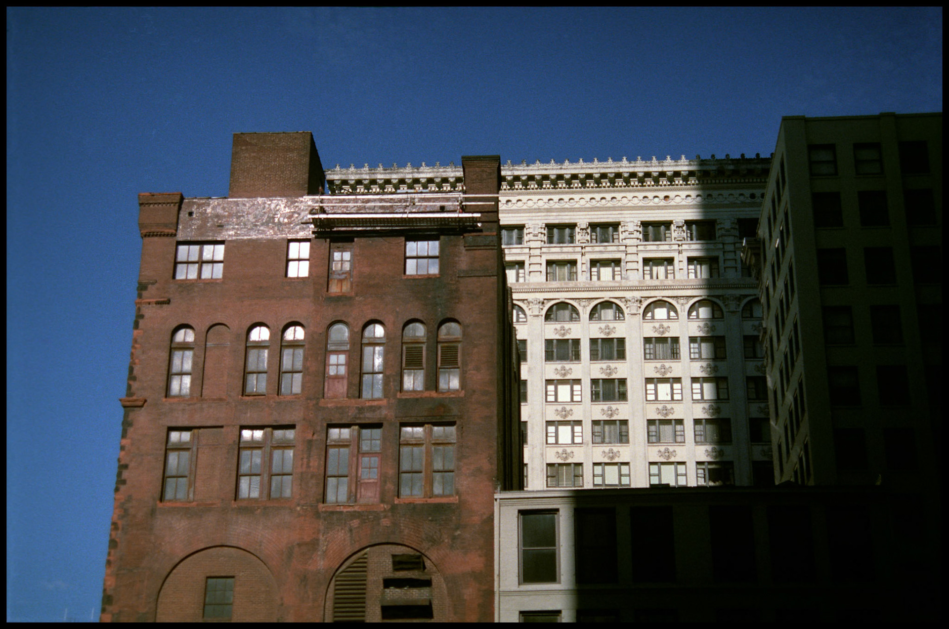 A highlighted commercial building in downtown St. Louis, Missouri. Part of a series shot one afternoon in November, 1988 called An Afternoon in St. Louis (a subset of my Industrial Geometry series).